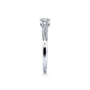 Tan elegante como luminoso, el engaste está pavimentado con diamantes en sus bordes interiores y exteriores, de modo que, tanto de lado como de frente, este solitario siempre está pavimentado de diamantes.