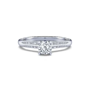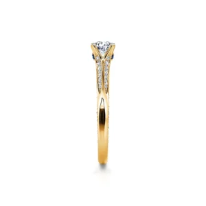 Tan elegante como luminoso, el engaste está pavimentado con diamantes en sus bordes interiores y exteriores, de modo que, tanto de lado como de frente, este solitario siempre está pavimentado de diamantes.