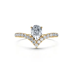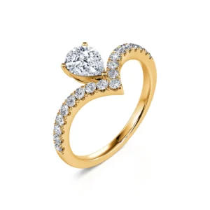 Enclavado en su montura de oro amarillo de talla 750/1000, este diamante talla pera de 0,50 quilates evoca una lágrima de alegría, como la emoción que despierta una melodía que toca nuestro corazón. La creación de Anne irradia con su luz a las mujeres más románticas.