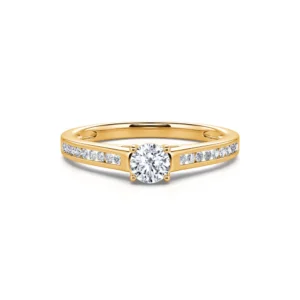 Tradicional y atemporal, Dolores es una creación en oro amarillo 750/1000 que evoca la inmortalidad de tu amor. Gracias a su piedra central, un diamante color G con pureza SI1, que varía de 0,22 ct a 0,40 ct, este anillo de compromiso acompañado puede corresponder tanto a los deseos más discretos como a los más imponentes.