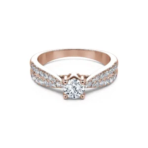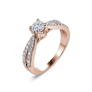 Inspirándonos en la sublime Katherine, te invitamos a descubrir nuestra creación en micropavé Ornelle, un anillo de compromiso con doble engaste estrecho.