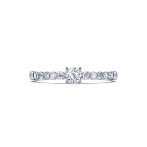 Engastado entre 4 garras, este modelo revela un diamante central sublime de calidad GSI1, disponible entre 0,20 ct y 0,40 ct.
