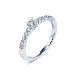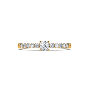 Engastado entre 4 garras, este modelo revela un diamante central sublime de calidad GSI1, disponible entre 0,20 ct y 0,40 ct.