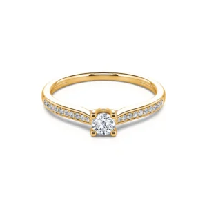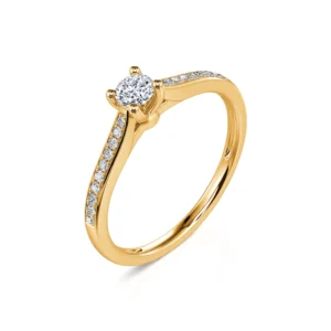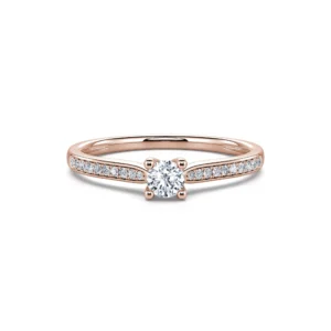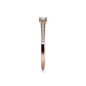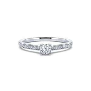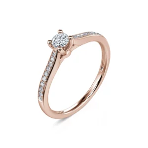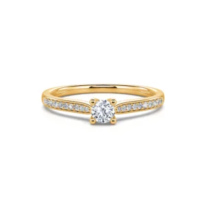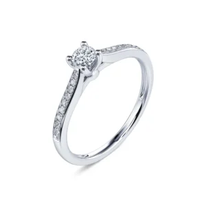 En su centro se eleva un diamante redondo de color G y pureza SI1 engastado en 4 puntas, garantizándole así un brillo deslumbrante.