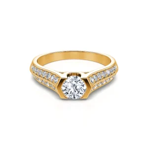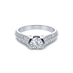 De nuestra colección de solitarios en pavé, la Casa le invita a descubrir el anillo de compromiso inspirado en las formas estructuradas de Nivia, el pavé Sophia y el solitario en semibisel.