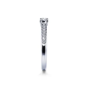 Su engaste de ancho intermedio está engastado con diamantes de 0,20 ct y está refinado en su centro para permitir que florezca su piedra central.