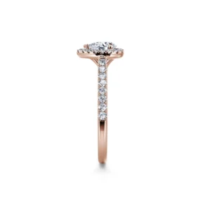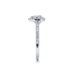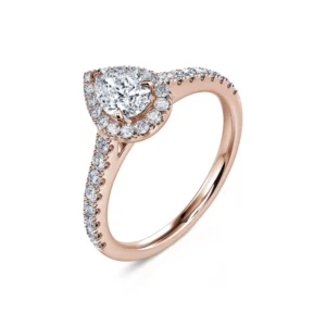 El atractivo de la sublime creación Théa reside en su original forma. Este anillo de compromiso de platino luce en su centro un magnífico diamante talla pera de 0,40 quilates, 0,70 quilates o incluso 1 quilate, acompañado de finos diamantes en todo el perímetro y en la mitad del engaste.