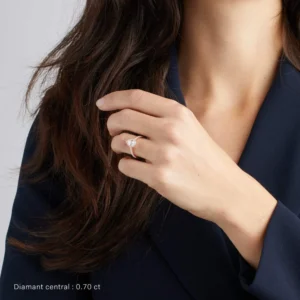 La Maison Zeina se esmera en seleccionar diamantes certificados por el laboratorio independiente GIA (a partir de 0,30ct). También trabaja con socios que se adhieren con orgullo a las normas establecidas por el Proceso de Kimberley, para garantizar piedras preciosas de origen ético. Si lo desea, podemos personalizar este anillo de compromiso en otras calidades de diamante.