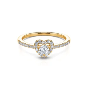 El máximo símbolo del amor, el corazón de diamantes que adorna este creativo solitario rodea el diamante central de calidad G-SI1 y es el testigo perfecto de su unión.