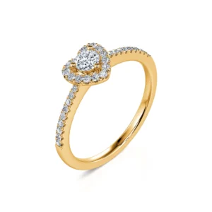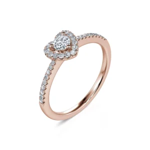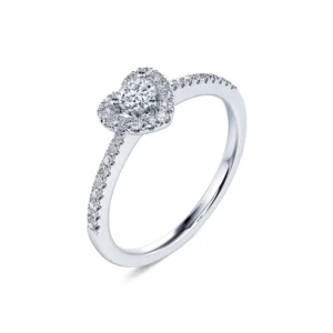 El máximo símbolo del amor, el corazón de diamantes que adorna este creativo solitario rodea el diamante central de calidad G-SI1 y es el testigo perfecto de su unión.